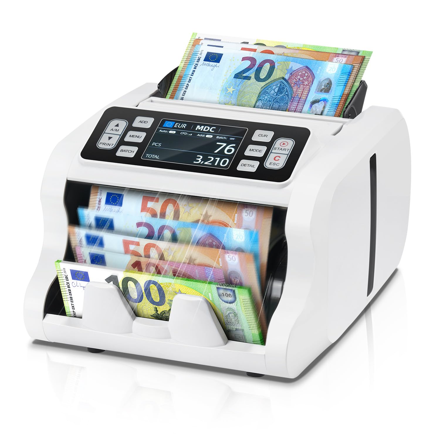 MUNBYN IMC20 Geldzählmaschine, Wertzählung (Einzelwährung USD/EUR), UV/MG/IR/MT Prüfung, LED-Display.